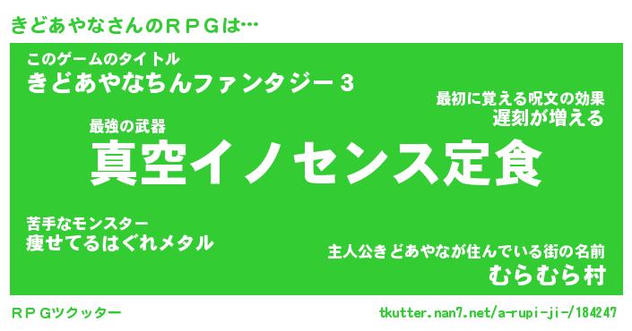 | 伝説のあだ名 | 『封印されしスナイパーきどあやな』 |
