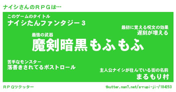 | ファンタジー風あだ名 | 『ナイフェル』『エターナルナイシー』 |