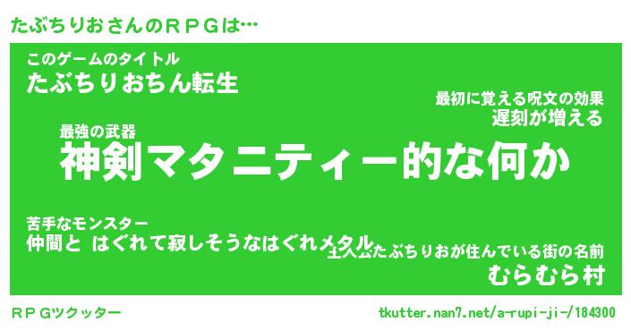 | 胡散臭い通販商品みたいなあだ名 | 『モテモテ間違いなし霊験あらたかなお札…その名も「たぶちりお」』 |