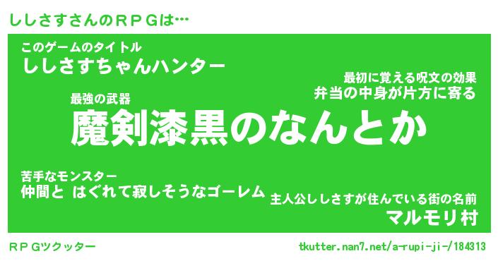| ファンタジー風あだ名 | 『シシフェル』『エターナルシシサスー』 |