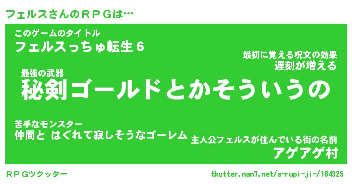 | ファンタジー風あだ名 | 『フェフェル』『エターナルフェルスー』 |