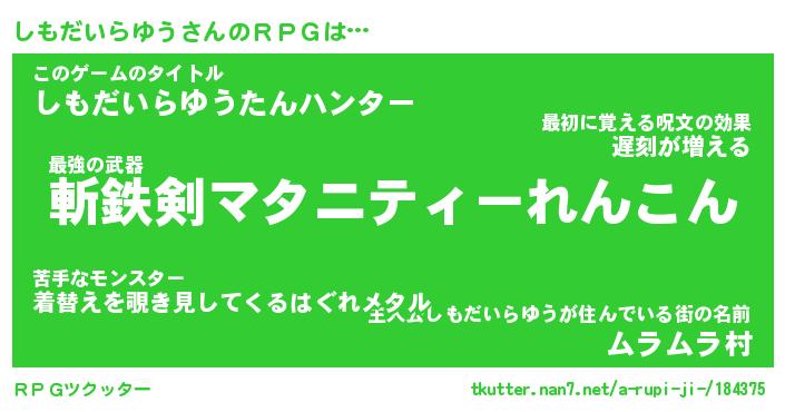 | 男性向けラノベタイトル風あだ名 | 『しもだいらゆうの憂鬱』 |