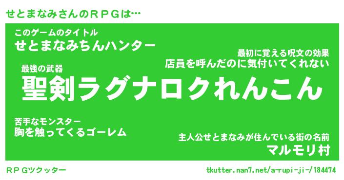 | 伝説のあだ名 | 『伝説の竜騎士せとまなみ』 |
