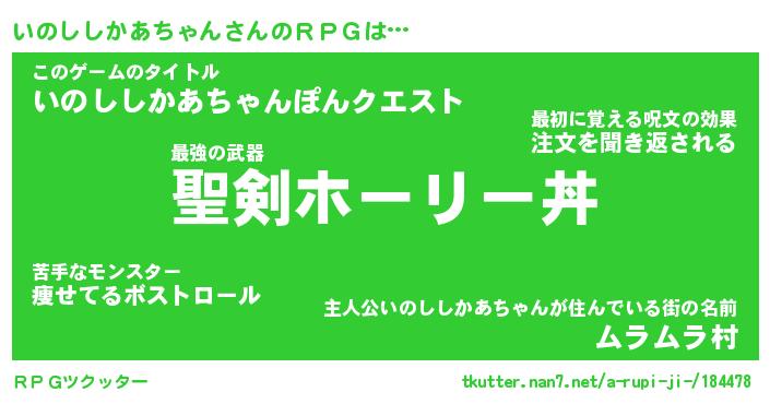 | 胡散臭い通販商品みたいなあだ名 | 『必ず成功する水晶球…その名も「いのししかあちゃん」』 |