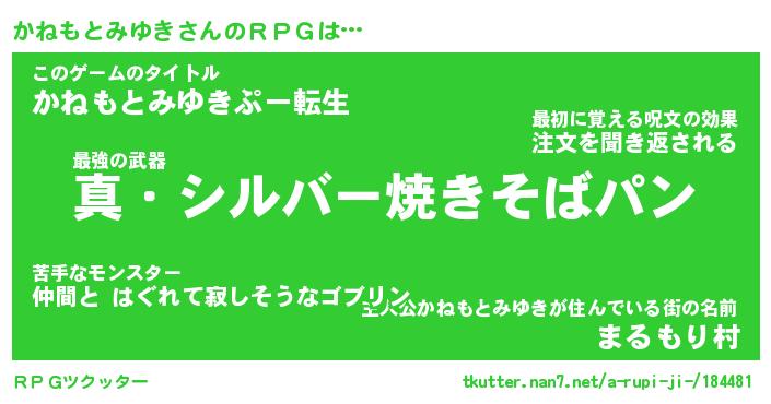| 伝説のあだ名 | 『封印されし傭兵かねもとみゆき』 |
