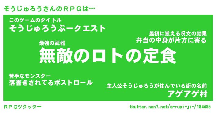 | 料理風あだ名 | 『節約★そうじゅろうと油揚げの玉子丼』 |