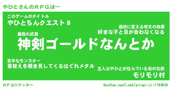 | ファンタジー風あだ名 | 『ヤヒフェル』『エターナルヤヒトー』 |