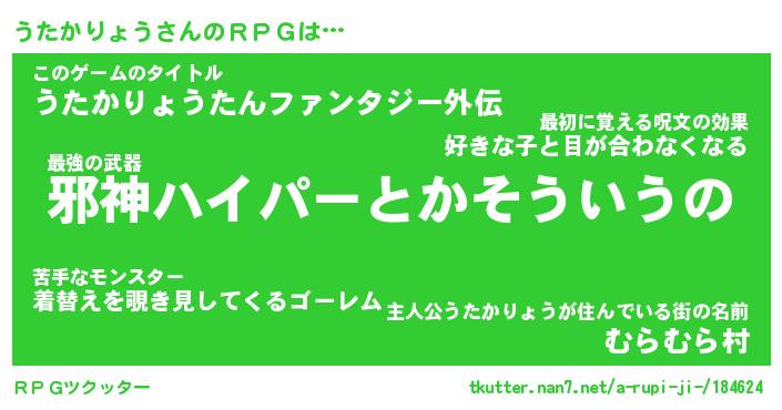 | 伝説のあだ名 | 『封印されし竜騎士うたかりょう』 |
