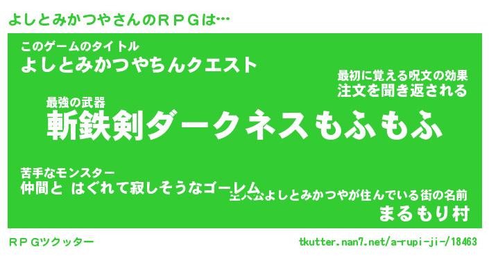 | 胡散臭い通販商品みたいなあだ名 | 『必ず成功する水晶球…その名も「よしとみかつや」』 |
