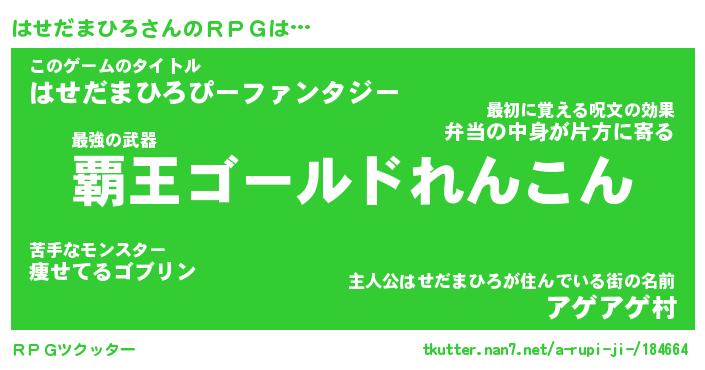 | 男性向けラノベタイトル風あだ名 | 『ハセダマヒロアートオンライン』 |