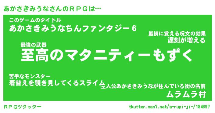 | 胡散臭い通販商品みたいなあだ名 | 『モテモテ間違いなし霊験あらたかなお札…その名も「あかさきみうな」』 |