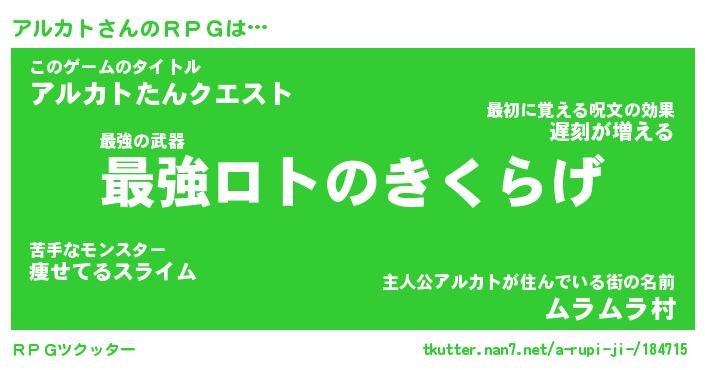 | 意味不明あだ名 | 『ペロリンアルカト』『永久保存アルカト』 |