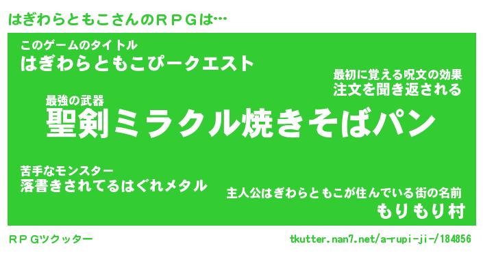 | ヘコむあだ名 | 『はぎにー』『酢こんぶ』『はぎを』 |