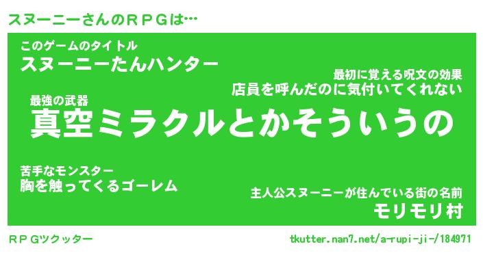 | ファンタジー風あだ名 | 『スヌフェル』『エターナルスヌーニーー』 |