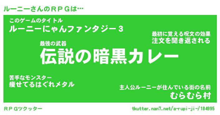 | 料理風あだ名 | 『節約★ルーニーと油揚げの玉子丼』 |