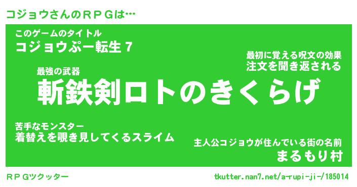 | 男性向けラノベタイトル風あだ名 | 『コジョウの憂鬱』 |