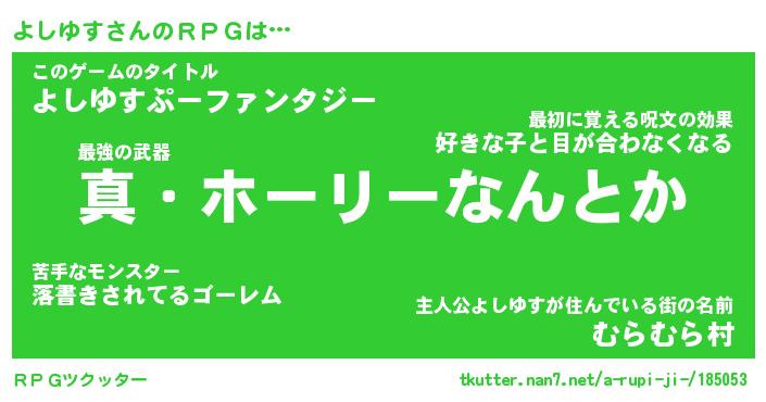 | ファンタジー風あだ名 | 『ヨシフェル』『エターナルヨシユスー』 |