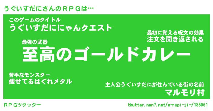 | ヘコむあだ名 | 『うぐもー』『牛乳』『うぐっぺ』 |