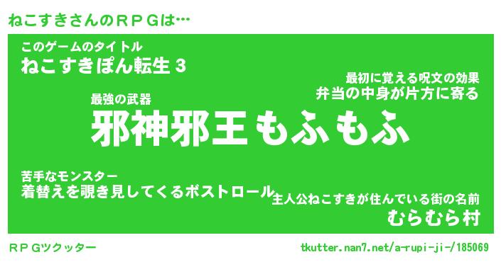 | ファンタジー風あだ名 | 『ネコフェル』『エターナルネコスキー』 |