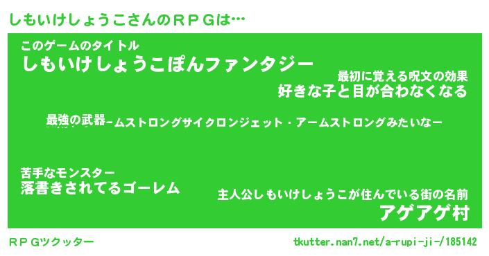 | 男性向けラノベタイトル風あだ名 | 『しもいけしょうこの憂鬱』 |