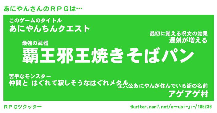 | 胡散臭い通販商品みたいなあだ名 | 『億万長者になれる水晶球…その名も「あにやん」』 |