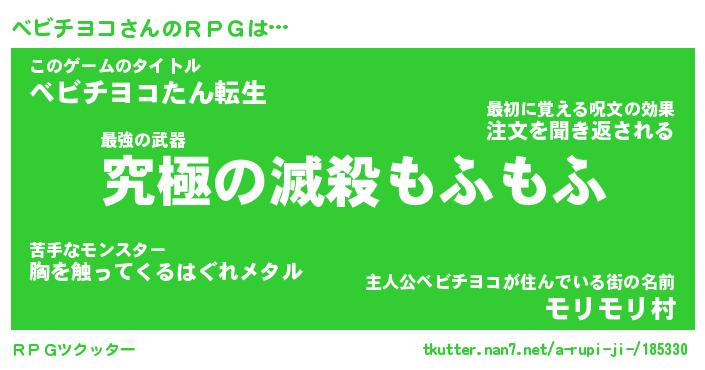 | ファンタジー風あだ名 | 『ベビフェル』『エターナルベビチヨコー』 |