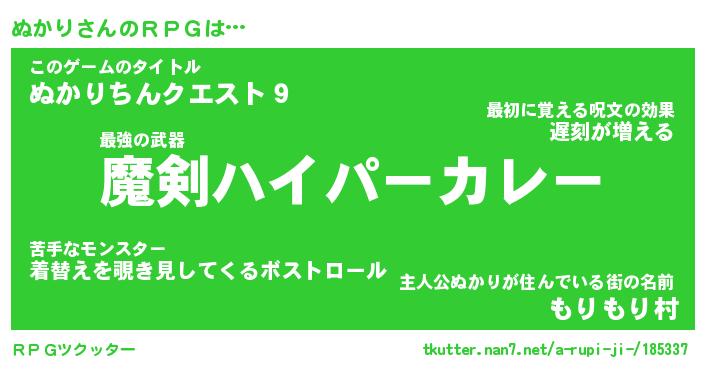 | ファンタジー風あだ名 | 『ヌカフェル』『エターナルヌカリー』 |