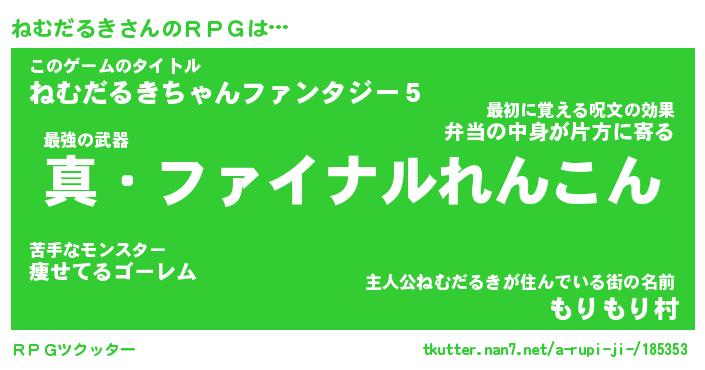 | ファンタジー風あだ名 | 『ネムフェル』『エターナルネムダルキー』 |