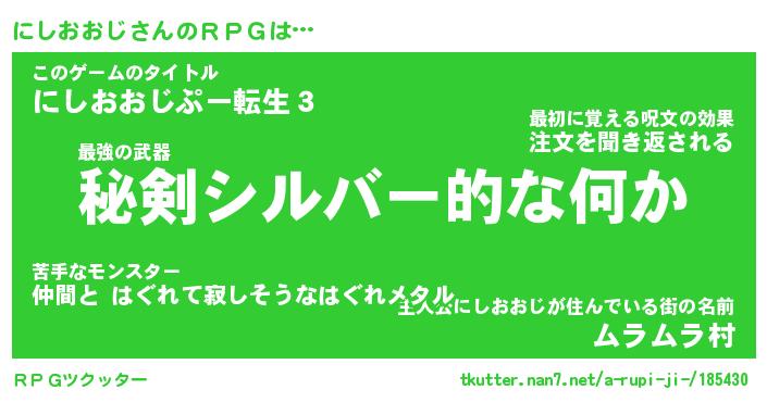 | 胡散臭い通販商品みたいなあだ名 | 『必ず成功する水晶球…その名も「にしおおじ」』 |