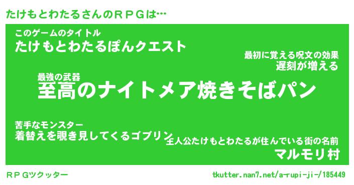 | 肩書あだ名 | 『たけもとわたる御曹司』 |