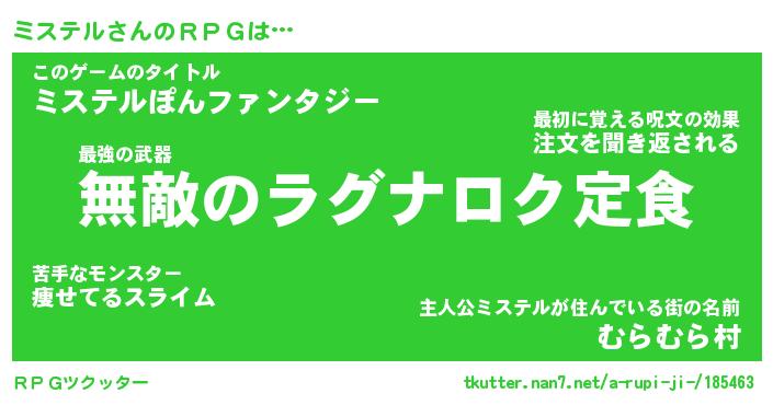 | 料理風あだ名 | 『節約★ミステルと油揚げの玉子丼』 |