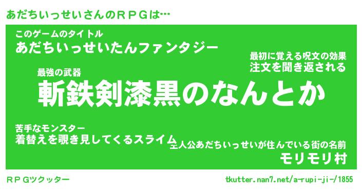 | 胡散臭い通販商品みたいなあだ名 | 『必ず成功する霊験あらたかなお札…その名も「あだちいっせい」』 |