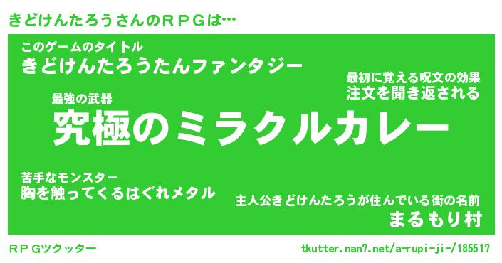 | 男性向けラノベタイトル風あだ名 | 『キドケンタロウアートオンライン』 |