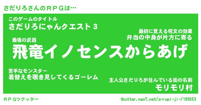 | 胡散臭い通販商品みたいなあだ名 | 『億万長者になれる霊験あらたかなお札…その名も「さだりろ」』 |