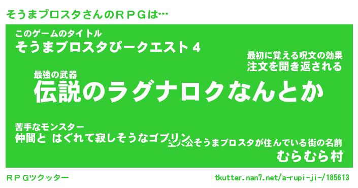 | 男性向けラノベタイトル風あだ名 | 『そうまブロスタの憂鬱』 |