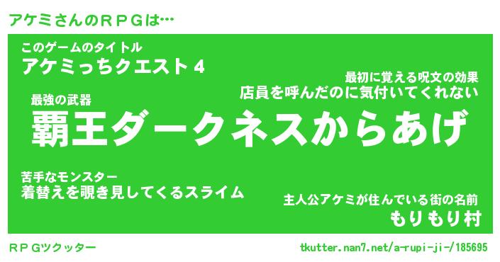 | 男性向けラノベタイトル風あだ名 | 『アケミアートオンライン』 |