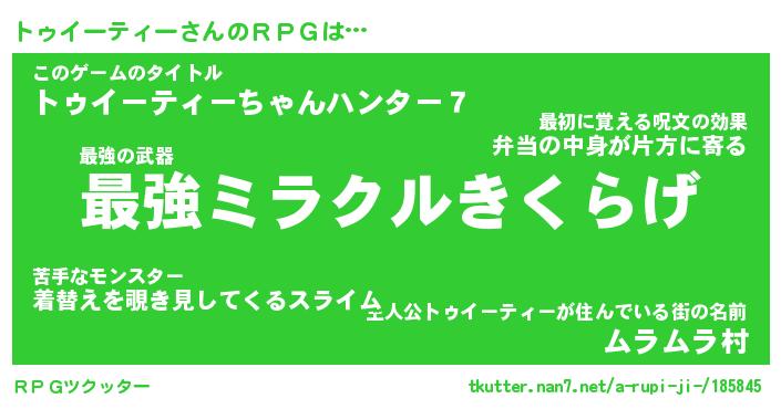 | 男性向けラノベタイトル風あだ名 | 『トゥイーティーアートオンライン』 |