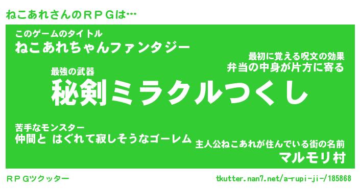 | ファンタジー風あだ名 | 『ネコフェル』『エターナルネコアレー』 |