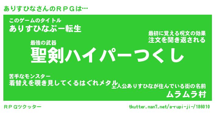 | 伝説のあだ名 | 『伝説の竜騎士ありすひな』 |