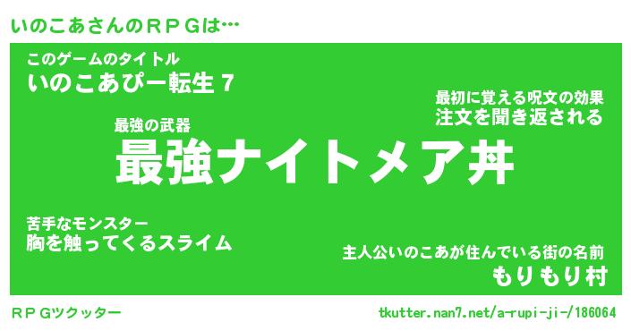 | 男性向けラノベタイトル風あだ名 | 『イノコアアートオンライン』 |