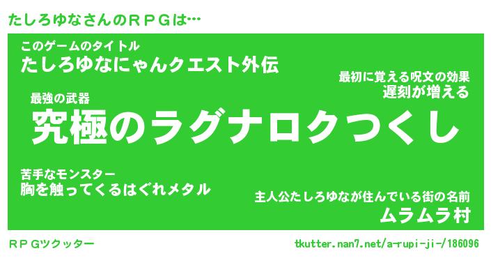 | ファンタジー風あだ名 | 『タシフェル』『エターナルタシロユナー』 |