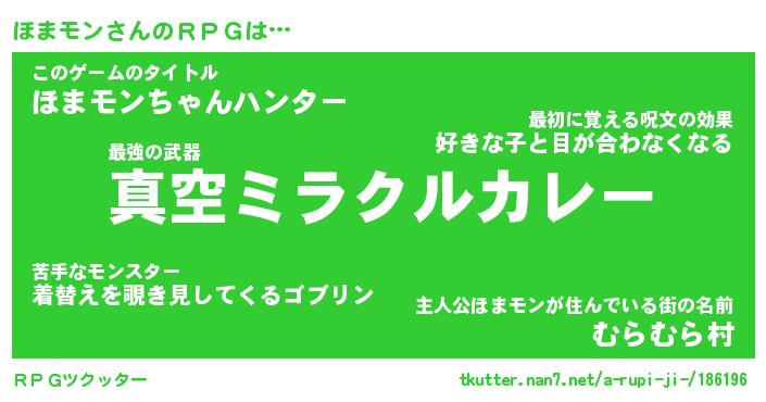 | 意味不明あだ名 | 『ペロリンほまモン』『永久保存ほまモン』 |