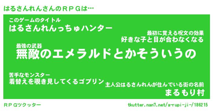 | 男性向けラノベタイトル風あだ名 | 『ハルサンレンアートオンライン』 |
