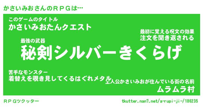 ファンタジー風あだ名 | 『カサフェル』『エターナルカサイミオー』 |