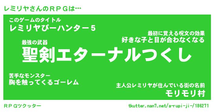 | ヒーロー風カッコイイあだ名 | 『スーパーレミリヤ』『魔戒騎士レミ』 |