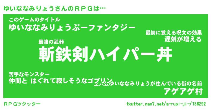 | 伝説のあだ名 | 『伝説の竜騎士ゆいななみりょう』 |