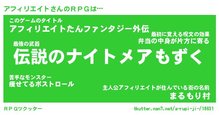 | 胡散臭い通販商品みたいなあだ名 | 『モテモテ間違いなし霊験あらたかなお札…その名も「アフィリエイト」』 |