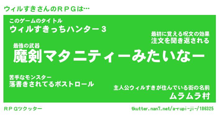 | ヒーロー風カッコイイあだ名 | 『スーパーウィルスキ』『天弓騎士ウィ』 |