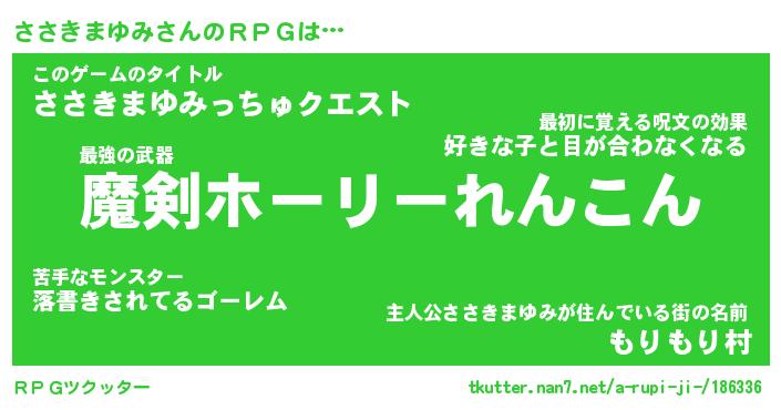 | ヒーロー風カッコイイあだ名 | 『スーパーササキマユミ』『幻影騎士ササ』 |