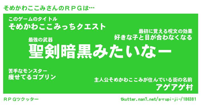 | 胡散臭い通販商品みたいなあだ名 | 『必ず成功する水晶球…その名も「そめかわここみ」』 |